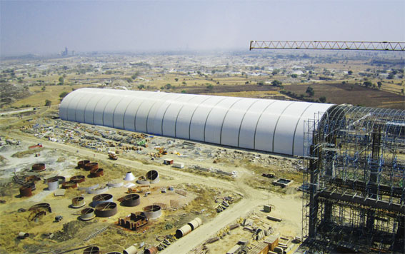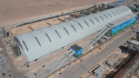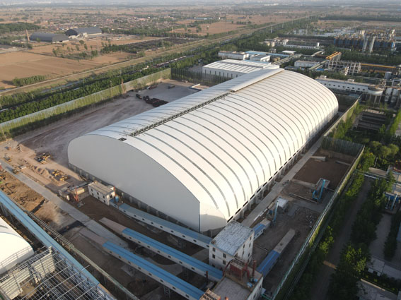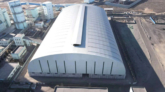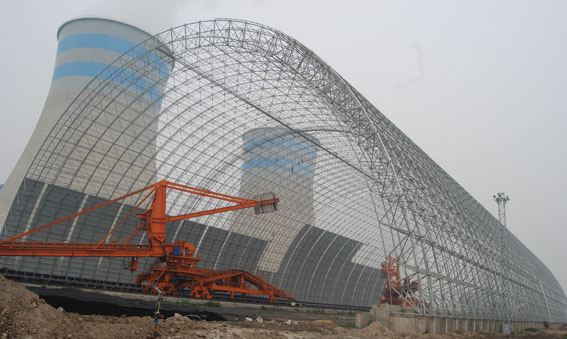 具有桿系和殼體雙重受力的特點,提出了設(shè)計和分析時合理的結(jié)構(gòu)形式、利用三心圓滿足儲料倉凈空的要求。利用仿真分析技術(shù)設(shè)計、控制了含鋼量。安裝:采用塔架支撐、逆安裝、單邊起步等工藝完成起步單元做成穩(wěn)定結(jié)構(gòu)承受施工荷載的高空散裝施工工藝,保證了柱面網(wǎng)殼在安裝過程中的質(zhì)量和安全。